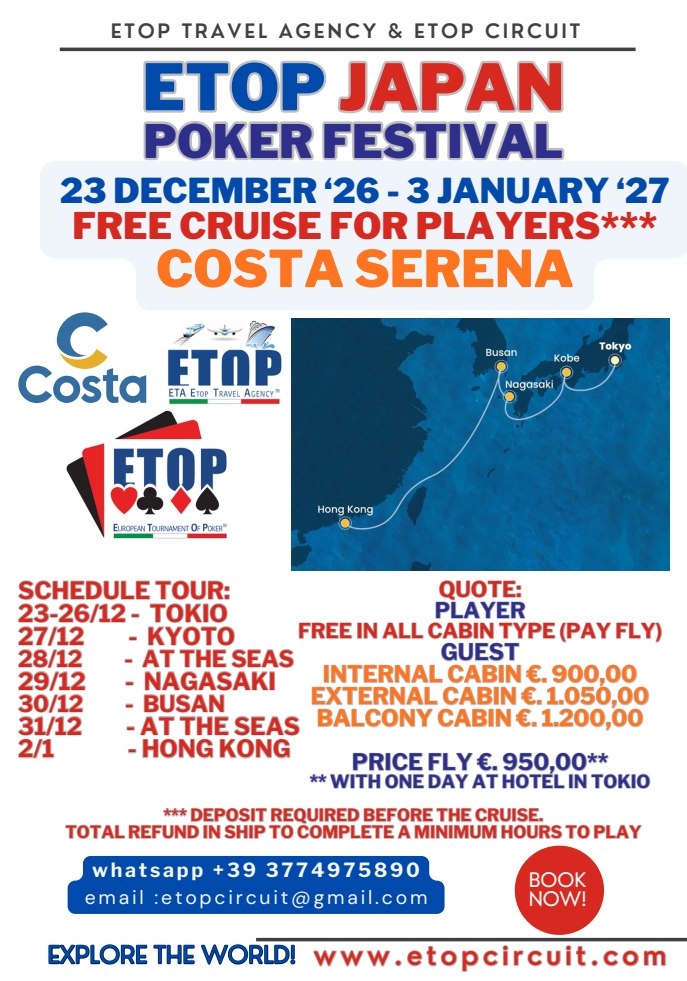 I giocatori ETOP possono coprire il costo della crociera con un minimo di ore di gioco.