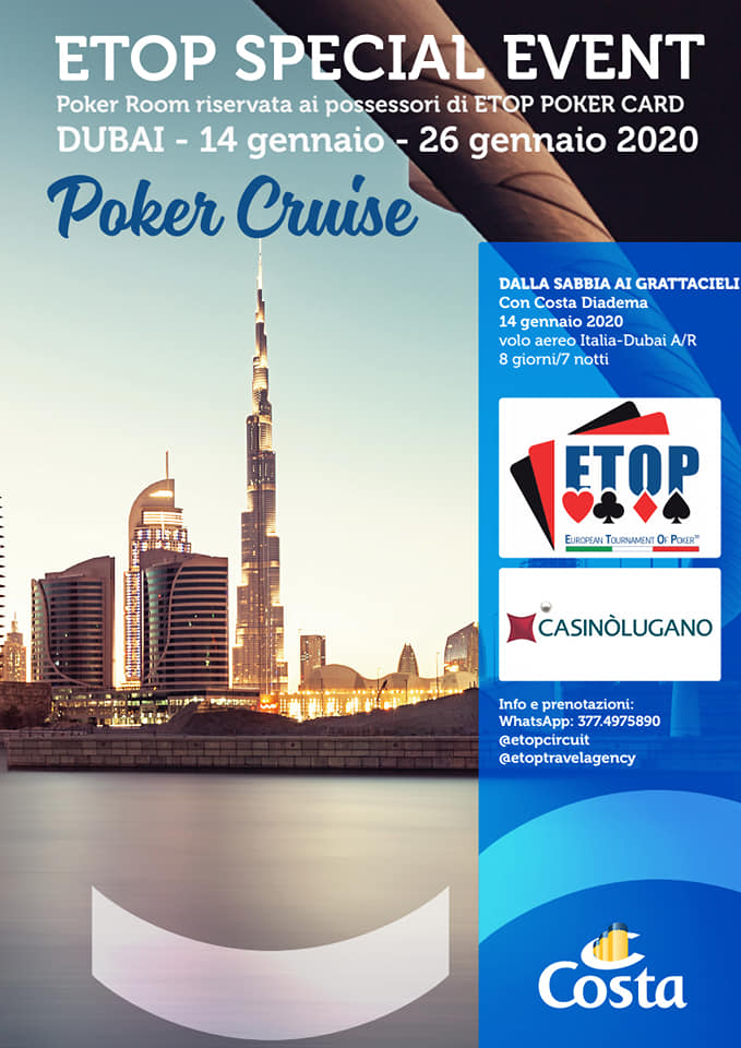 ETOP esplora la calda ed accogliente città di Dubai. Raggiunta assieme a Costa Diadema, la quale ospita tutti i possessori della esclusiva ETOP POKER CARD.