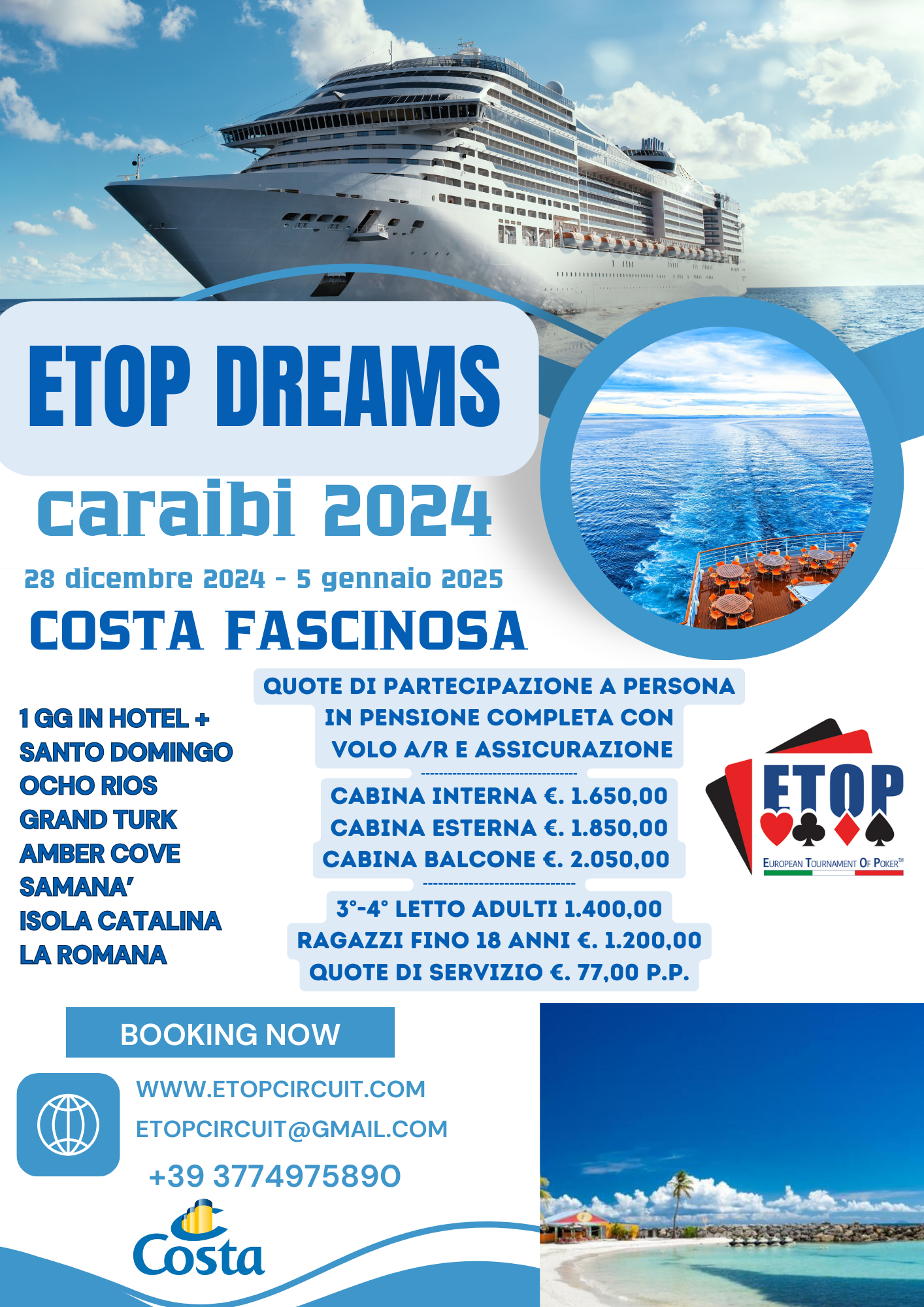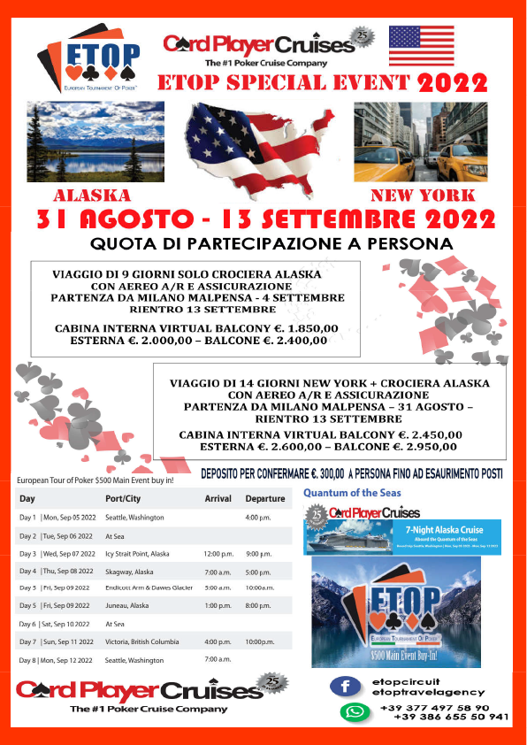 ETOP torna operativa nel 2022 con tante nuove tappe ed eventi. Ad agosto sbarca in Alaska con Quantum Of The Seas. una nuova ed esclusiva tratta per tutti gli amanti del poker.