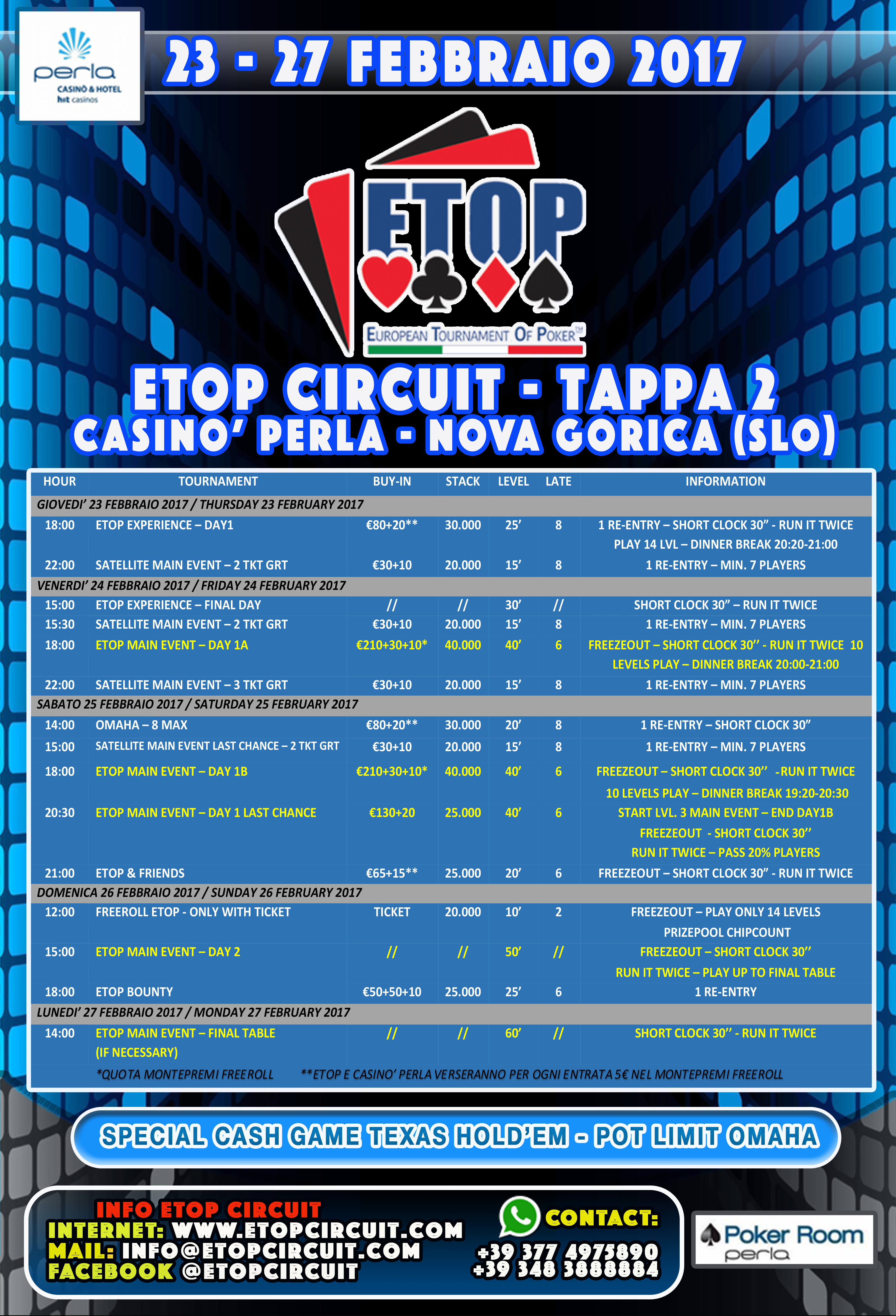 Il secondo evento ETOP ospitato al casinò Perla di Nova Gorica