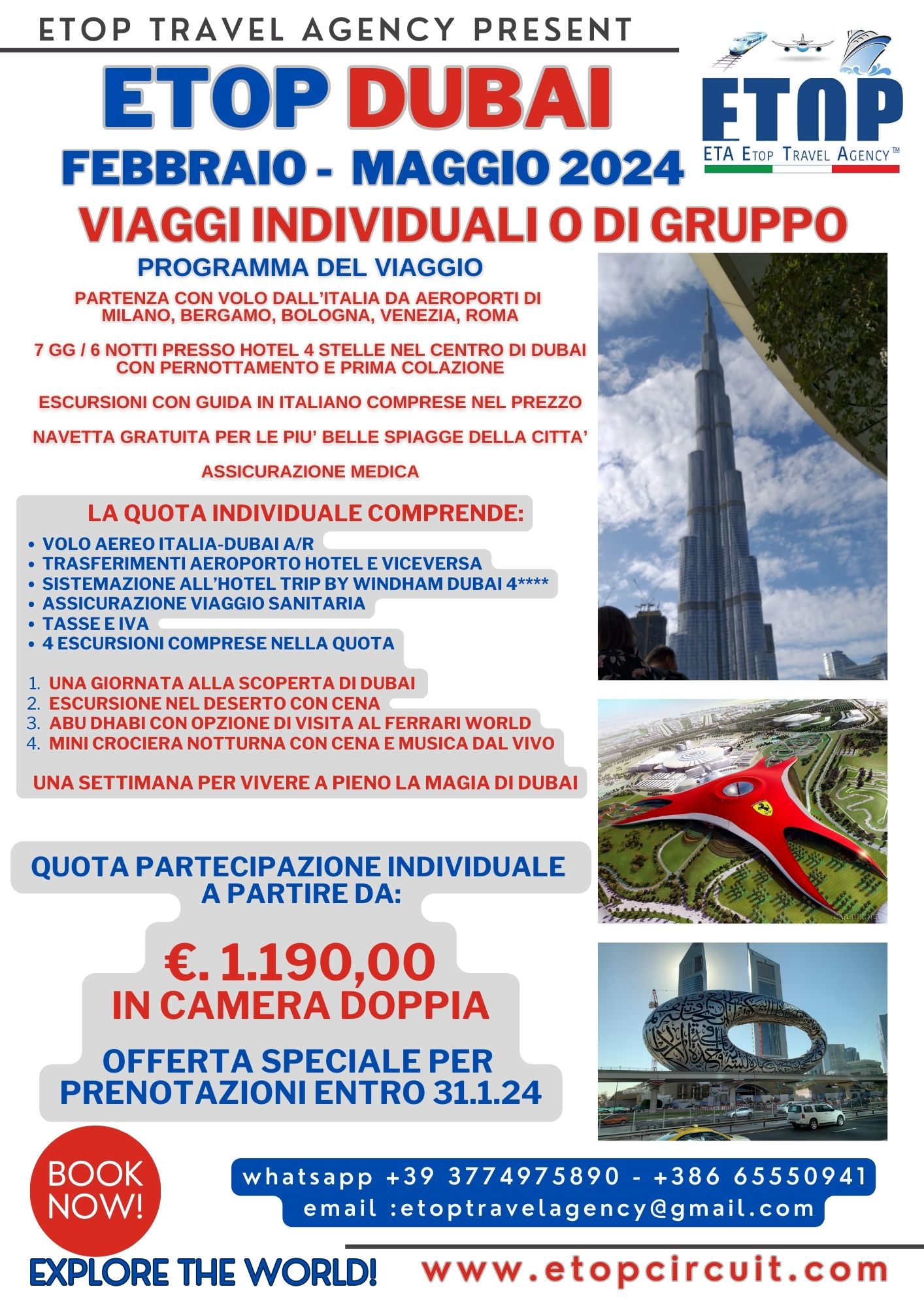 ETOP è tornata ad esplorare la città di Dubai. Raggiunta con un comodo volo, la città ci ha subito accolti con le sue numerose attrazioni. ETOP Dubai non delude mai le aspettative!